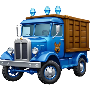 shiny crushed-dark-blue crystal frozen Scooby Doo 1912 antique long-wheelbase cab over off-road trails low rider moving truck emoji