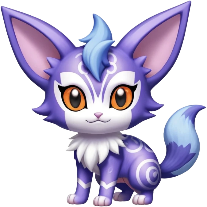 Shiny Cute Adorable Espeon-Litten-Noibat-Meowstic-Hybrid-Creature with pattern-markings emoji
