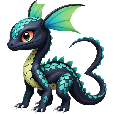 Shiny Cute Realistic Exotic Colorful Meloetta-Noivern-Toothless-Fakémon-creature-hybrid emoji | AI Emoji Generator