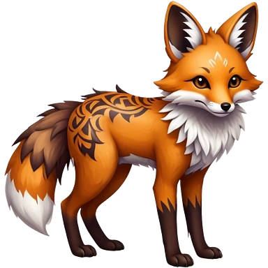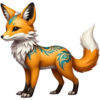 Epic Feral Rare Fantasy shiny cool fluffy Vernid-Trico-Fox-species-hybrid-animal by LiLaiRa, tribal-Art-tattoo-patterns , tufted ears, full body emoji