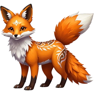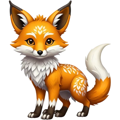 Epic Feral Rare Fantasy shiny cool fluffy Vernid-Trico-Fox-species-hybrid-animal by LiLaiRa, tribal-Art-patterns , tufted ears, full body emoji