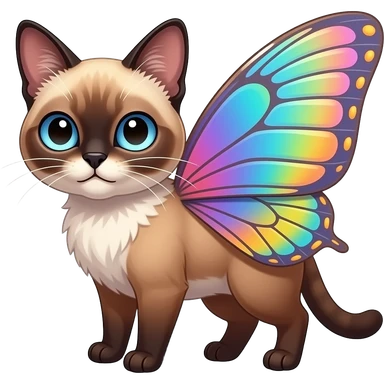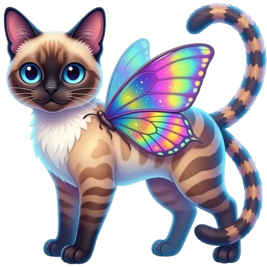 Colorful exotic iridescent tropical shiny Fantasy-Siamese-Bobcat-Caracal-Moth-Scottish-Fold-feline-Fakémon-feline-hybrid (full body) emoji