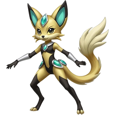 Futuristic Zeraora-Vernid-Primagen-Protogen-Fakémon-Pokémon-creature-fusion (full body) emoji