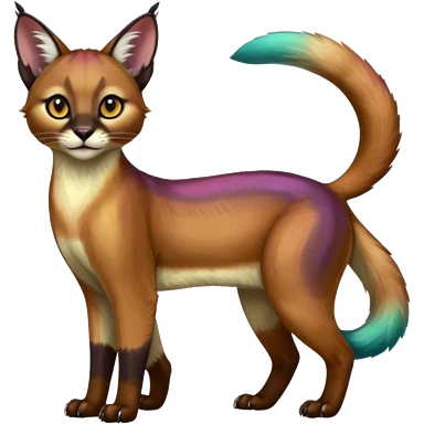 Colorful iridescent Asian painted anime-styled big-eyed shiny glorious divine marked exotic cool beautiful realistic caracal-civet-oncilla-animal-Fakémon-hybrid-fursona (full body) emoji
