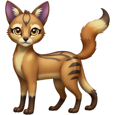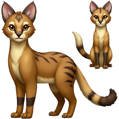 glorious divine exotic cute cool beautiful shiny beautiful fantasy-caracal-civet-genet-sergal-vernid-Cacomistle-oncilla-animal-Fakémon-hybrid-fursona (full body) emoji