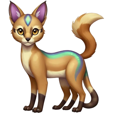 iridescent pastel glorious divine exotic cute cool beautiful shiny beautiful fantasy-caracal-civet-genet-sergal-vernid-Cacomistle-oncilla-animal-Fakémon-hybrid-fursona (full body) emoji