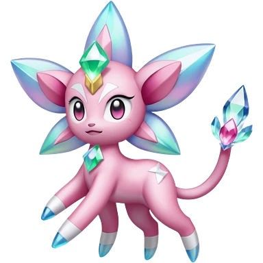 Shiny glossy pastel whitish Diancie-Absol-Sylveon-Meloetta-fusion emoji | AI Emoji Generator
