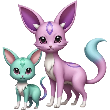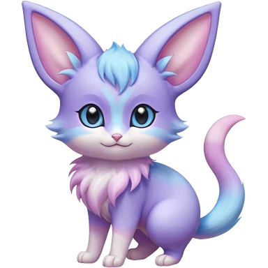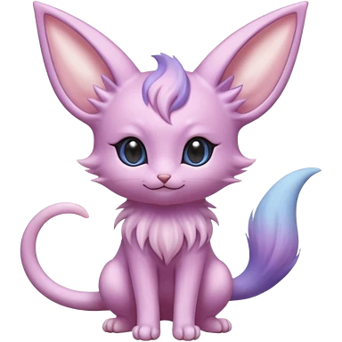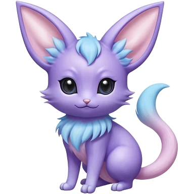 Cute kawaii fluffy big-eyed anime-styled floofy floofy Pastel Gradients Shiny silky realistic smooth soft innocent Espeon-Mew-Minccino-Delcatty-fusion emoji