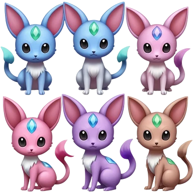 Shiny Glossy Smooth Soft Silky Cute Espeon-Mew-Amaura-Delcatty-Pachirisu-fusion emoji | AI Emoji Generator
