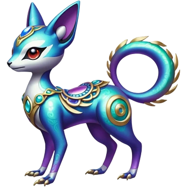 Shiny Colorful Futuristic Ornate Oriental Painted Asian Vernid-Trico-Meloetta-Latias-Koraidon-Peppercat-Protogen-Pokémon-Digimon-Fakémon-fusion-hybrid-creature emoji