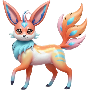 Shiny iridescent light warmly colored reddish-orange-gold-gradients vibrant colorful pastel flourishing flurry fuzzy Absol-Minccino-Furret-Zangoose-Chinchilla-Stitch-fusion-animal-Fakémon-hybrid-creature emoji