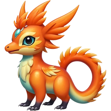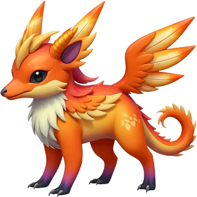 Shiny iridescent light warmly colored reddish-orange-gold-gradients neon vibrant colorful pastel flourishing flurry fuzzy Nargacuga-Palkia-Meloetta-Noibat-fusion-animal-Fakémon-hybrid-creature, by griffsnuff emoji