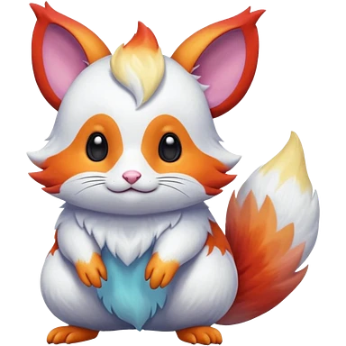 Shiny iridescent light warmly colored reddish-orange-gold-gradients vibrant colorful pastel flourishing flurry fuzzy Absol-Minccino-Furret-Zangoose-Chinchilla-Stitch-fusion-animal-Fakémon-hybrid-creature emoji