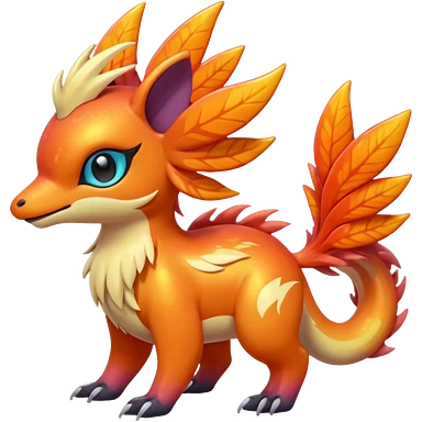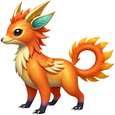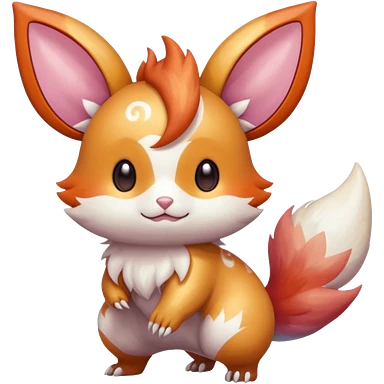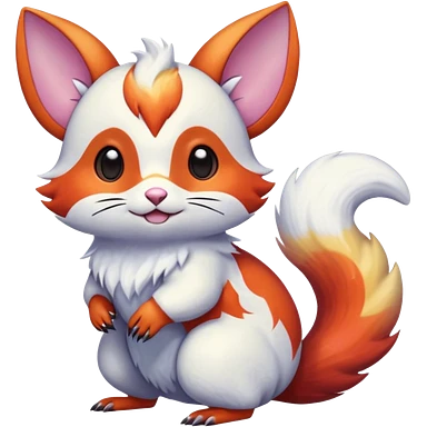 Shiny iridescent light warmly colored reddish-orange-gold-gradients vibrant colorful flourishing flurry fuzzy Absol-Minccino-Furret-Zangoose-Chinchilla-Stitch-fusion-animal-Fakémon-hybrid-creature emoji