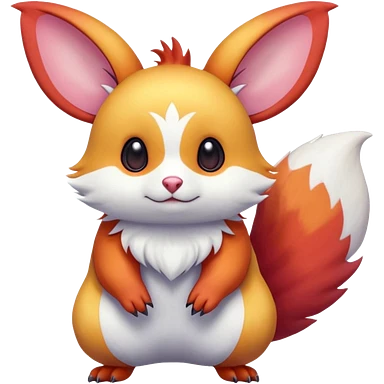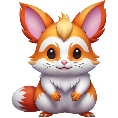 Shiny light warmly colored reddish-orange-gold-gradients vibrant colorful pastel flourishing flurry fuzzy Absol-Minccino-Furret-Zangoose-Chinchilla-Stitch-fusion-animal-Fakémon-hybrid-creature emoji