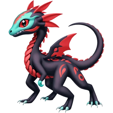Colorful Shiny Glossy Smooth Cool Badass Meloetta-Litten-Noivern-Salandit-Guilmon-Darkrai-Pokémon-Fakémon-fusion-hybrid-creature emoji