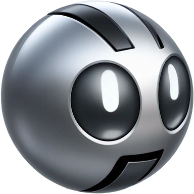 shiny metal ball that has the smooth, reflective surface of steel, with Kirby-style eyes—those simple, oval, black eyes with a white highlight, giving it a cute and expressive look. Now, this metal ball has four car wheels attached to it emoji | AI Emoji Generator