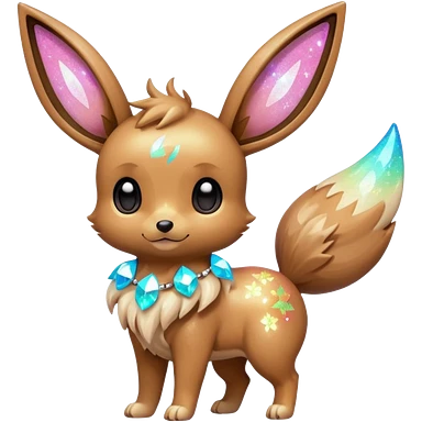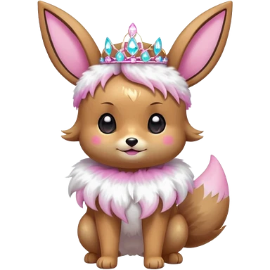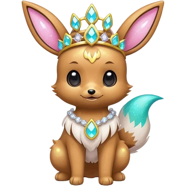 Kawaii Shiny Glowing Neon Glittery Sparkly Bling-bling Glittery Eevee, wearing accessories, wearing apparels, wearing a tiara, Full Body emoji