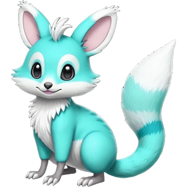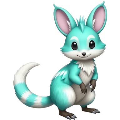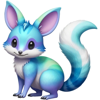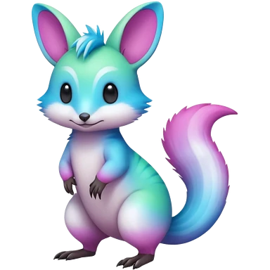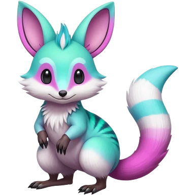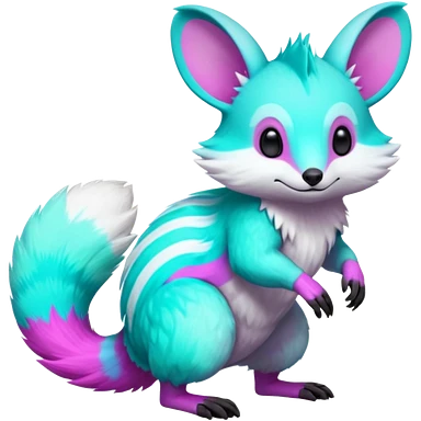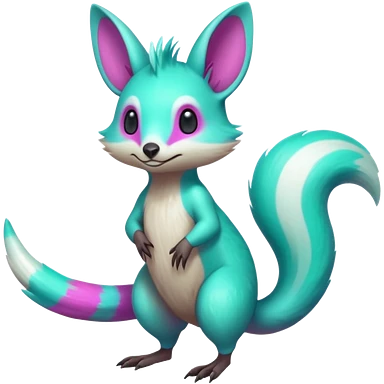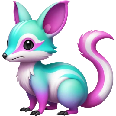Shiny smooth silky soft Cyan-Yellowish-Magenta Minccino-Zeraora-Emolga-Vernid-Sergal-fusion-hybrid-animal-creature, full bodyemoji