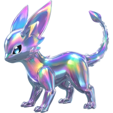 Shiny sparkly transparent bioluminescent luminescent vibrant bright pastel dark exotic tropical iridescent colorful nebula rainbow gradients cyber-Protogen-Fakémon-Pokémon-Vernid-creature emoji | AI Emoji Generator