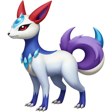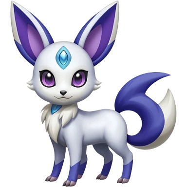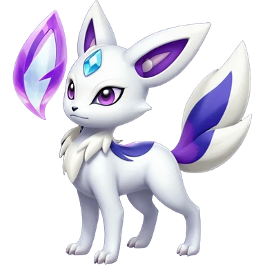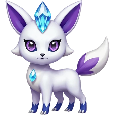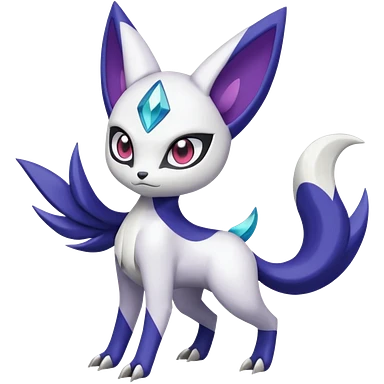 Shiny White with Violet and Indigo markings and crystals Meloetta-Absol-Minccino-Zangoose-Pokémon-Fakémon-fusion-hybrid-creature emoji