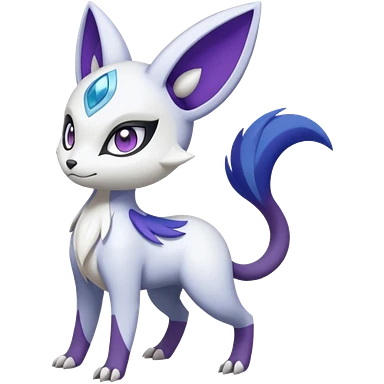 Shiny White with Violet and Indigo markings Meloetta-Eevee-Minccino-Zangoose-Pokémon-Fakémon-fusion-hybrid-creature emoji