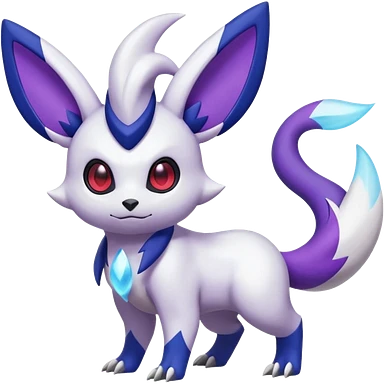 Shiny White with Violet and Indigo markings and crystals Meloetta-Absol-Minccino-Zangoose-Pokémon-Fakémon-fusion-hybrid-creature emoji