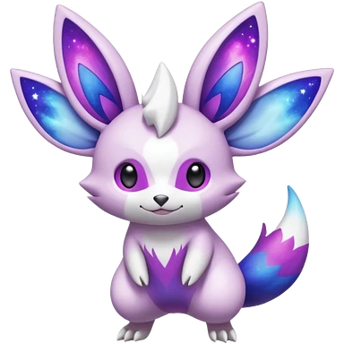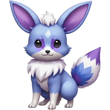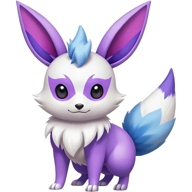 Shiny White with Violet and Indigo markings and nebula markings Eevee-Minccino-Zangoose-Pokémon-Fakémon-fusion-hybrid-creature emoji