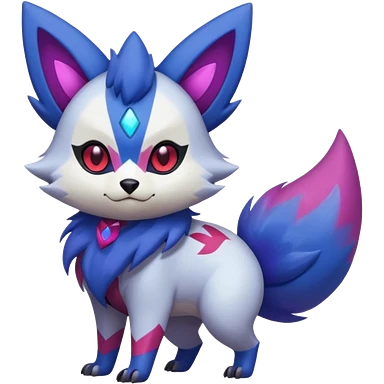 Shiny White with Violet and Indigo markings and nebula markings Zorua-Zangoose-Pokémon-Fakémon-fusion-hybrid-creature emoji