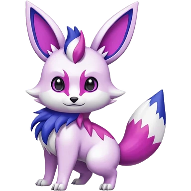 Shiny White with Violet and Indigo markings Meloetta-Eevee-Minccino-Zangoose-Pokémon-Digimon-Fakémon-fusion-hybrid-creature emoji | AI Emoji Generator