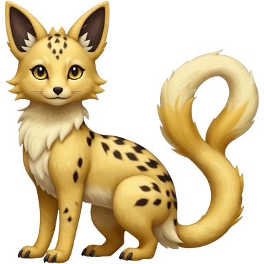 Shiny whitish golden brown fluffy furry hyper realistic lifelike beautiful pretty soft beige Goldilocks cream-colored Celestial Salandit-Umbreon-Genet-Noivern-Noibat-Serval-Hybrid (Full body) emoji