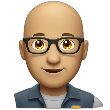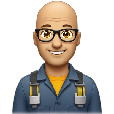 senior electrician with light beard and blue eyes with glasses having large tablet emoji