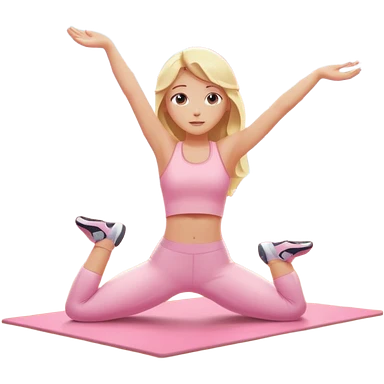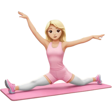 white brunette girl in light pink workout clothes doing dance stretching on yoga mat emoji