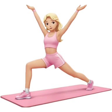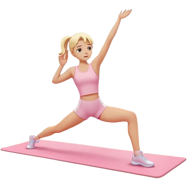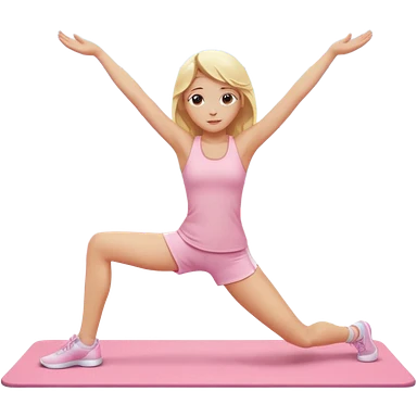 a pretty 20-year-old woman with white skin doing stretching on a pink yoga mat, iPhone memoji style emoji