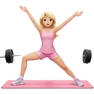 Cinematic Realistic angelic blonde girl stretching in light pink gym emoji