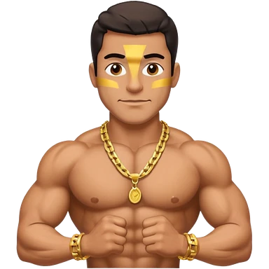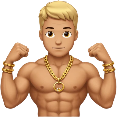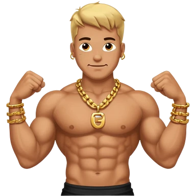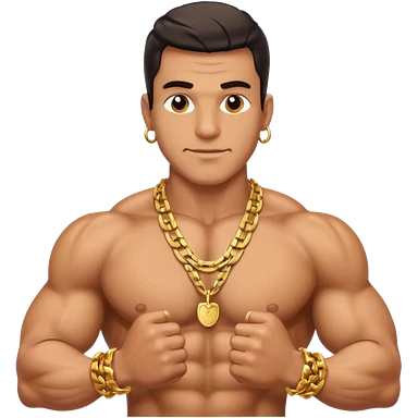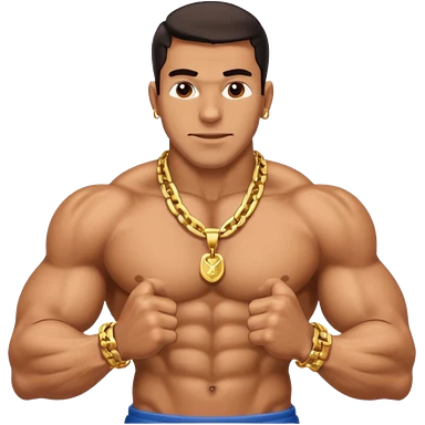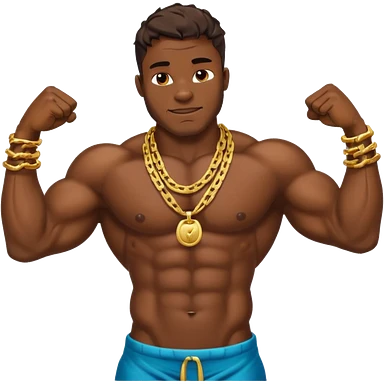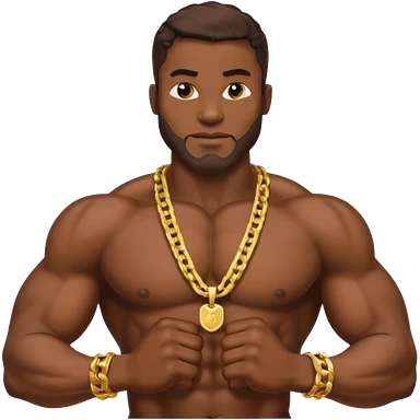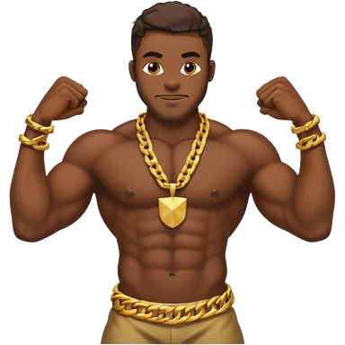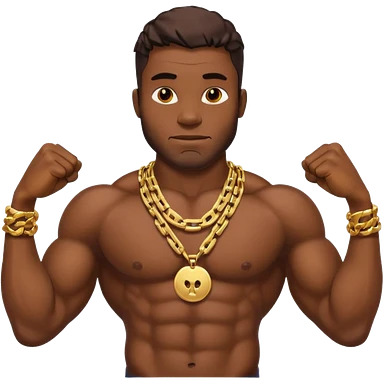 smug muscular shirtless nigerian flexing with gold chain emoji