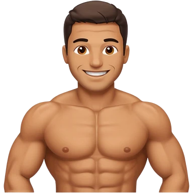 young white man with short black hair, shirtless, muscular, full body without shoes emoji