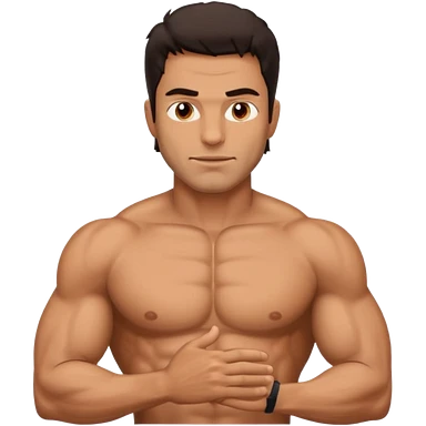 A muscular shirtless white man with wide and very puffy areolas and nipples emoji
