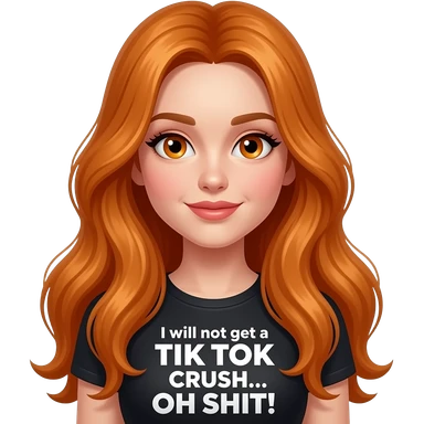 sexy girl with overlong ginger hair and ginger eyes a top with I will not get a TIK TOK CRUSH... OH SHIT! written on it emoji