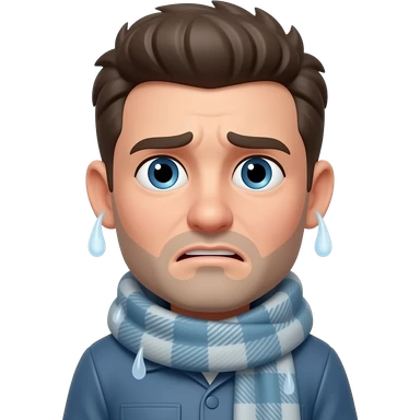 very cold classic yellow emoji, shivering, blue face, icicles, closed mouth emoji