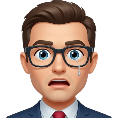 Shocked face with glasses taking off just at the middle F the eyes emoji