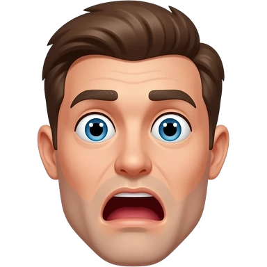Close-up face of a man, expressive face, Shocked, clean background, sticker style, high contrast, bold outline, emoji style, transparent background emoji