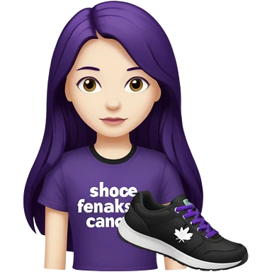 Girl with dark purple long hair black tshirt with a shoe " freaks canada " in white font letters emoji