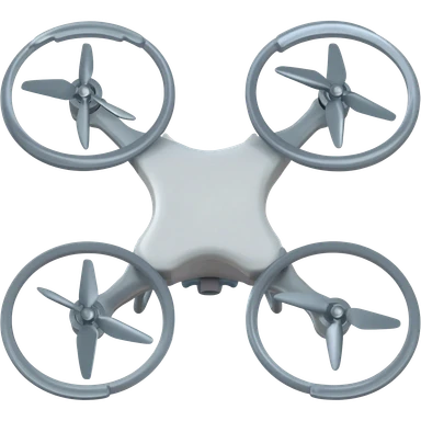 A futuristic drone emoji made of polished silver chrome, smooth rounded body, minimal propellers, reflective metallic surface, soft studio lighting, iOS emoji style, centered, clean white background emoji
