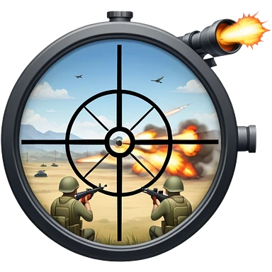 An icon featuring the crosshairs of an automatic rifle in the foreground, with a battlefield in the background. The design captures the intense focus of a first-person shooter game, with soldiers and explosions visible through the sights. Transparent background. emoji