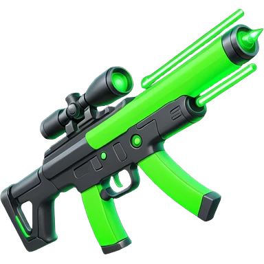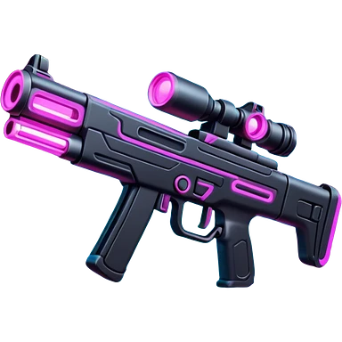 shooter game with this color purple and neon green make it as an assult rifle emoji | AI Emoji Generator