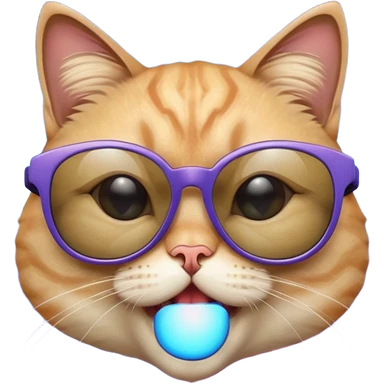 Silly looking cat with sunglasses with a galaxy tint on them emoji