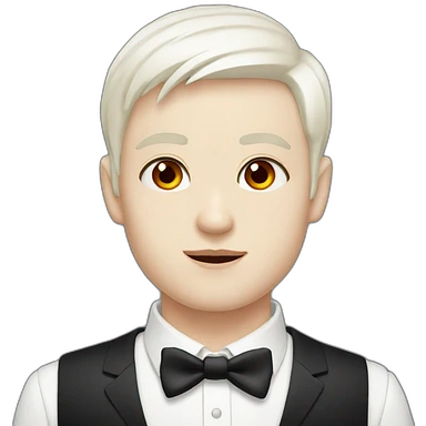 Boy, red eyes, White short hair, pale-skin, tuxedo emoji