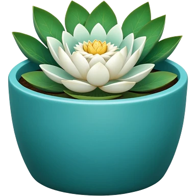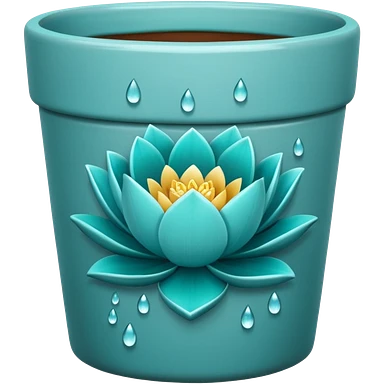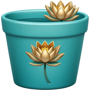 Decorative turquoise ceramic flower pot with a low, cylindrical shape and a lotus flower plant emoji
