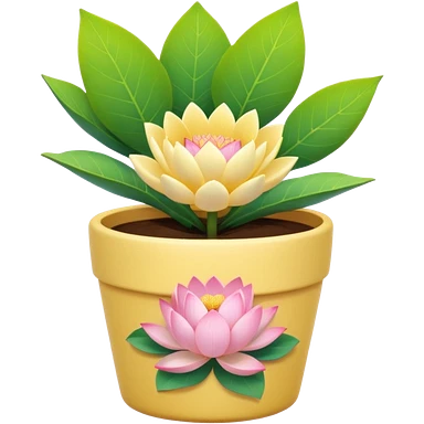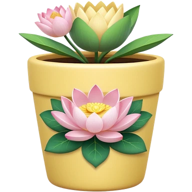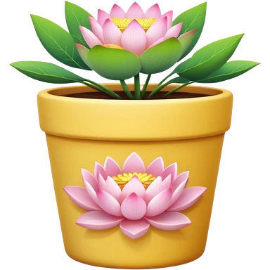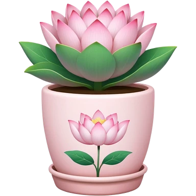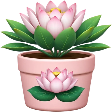 Short, cylindrical ceramic flower pot in pastel pink, containing a lotus flower plant. emoji | AI Emoji Generator